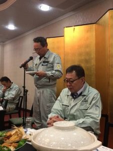 宴もたけなわ・・・締めの挨拶は、吉原機材部長から。