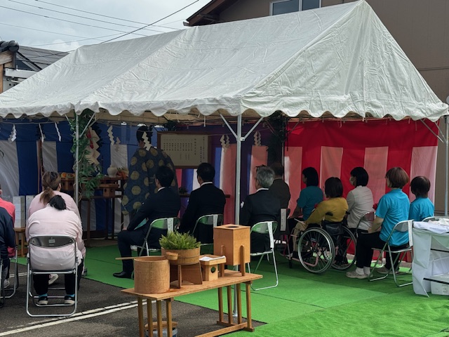 製菓工場改築工事 地鎮祭 こんにちは。 大安の本日、上越市内にてNPO法人ささえ愛みんなの家様の製菓工場改築工事の地鎮祭が執り行われました。 天気予報は雨、今にも雨が降りそうな心配な雲行きでしたが何とか天気は持ち、無事神事を終えることができました。 関係者一同、建物の無事完成を願いお祈りをいたしました。 完成引渡しまで安全作業で進めて参ります。 投稿日|2025.10.01 次の記事へ 前の記事へ