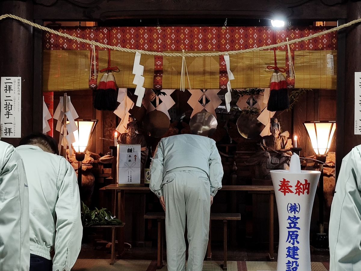 神主さんに祝詞をあげていただき、社長が代表して玉串を奉納。ひとりひとりが静かに神事に向き合う時間は、普段の慌ただしさを忘れ、気持ちを整える大切なひとときになりました。