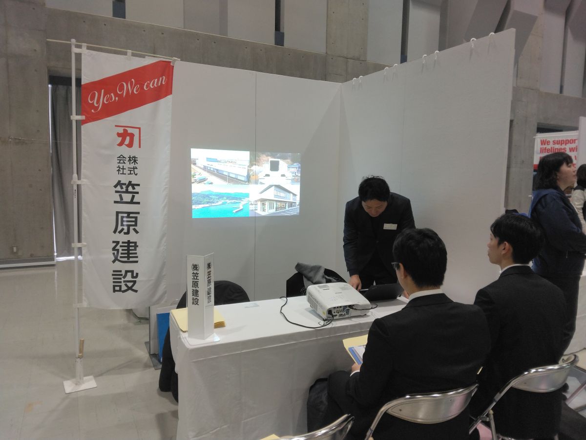 降雪による交通機関の乱れから参加学生の人数は少なかったものの、ブースで会社説明を聞いてくれた学生からは積極的な質問が寄せられました。