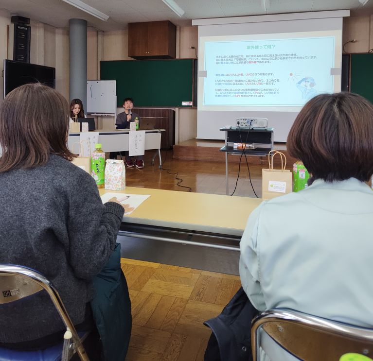 今回は、薬剤師の方、エステサロン経営者の方、ネイルサロン経営者の方の3名を講師としてお招きし、紫外線の種類や予防対策、身だしなみに関するお話を伺いました。