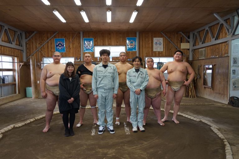 先週からインターンシップに来ているモンゴル高専の学生と一緒に、海洋高校相撲部の見学に行ってきました。