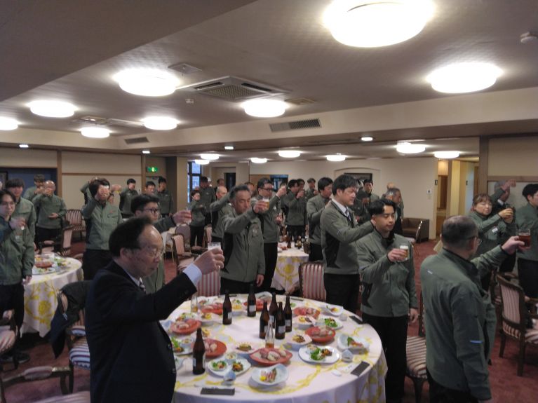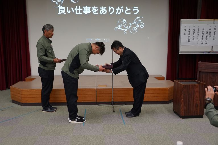 また、社員会議の後には褒賞および表彰が行われ、日頃から努力を重ね、優れた成果を上げた社員が称えられました。その後、業務表彰懇親会が行われ、成果を振り返りながら、労いと感謝の気持ちを共有する和やかな時間となりました。